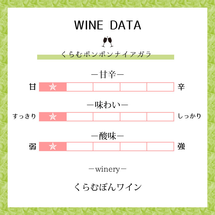 ナイアガラぶどうの風味がそのままワインに残っています。
