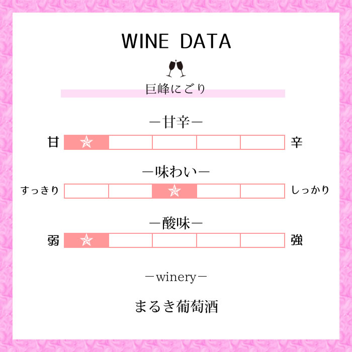 艶やかな色、優美な完熟巨峰の凝縮した美味しさをそのまま楽しめる新酒です。