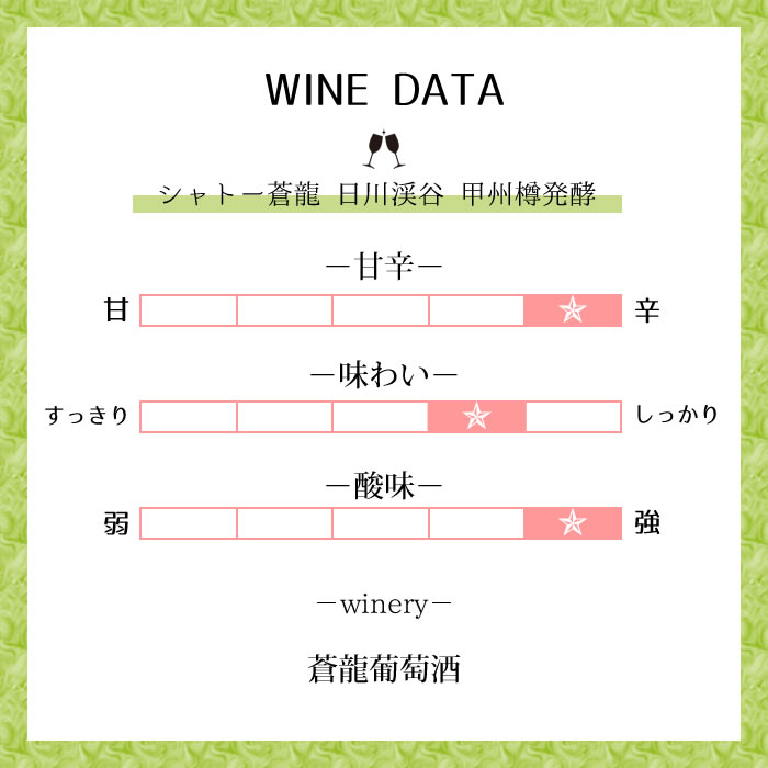 蒼龍葡萄酒 シャトー蒼龍 日川渓谷 甲州樽発酵 2024 750ml
