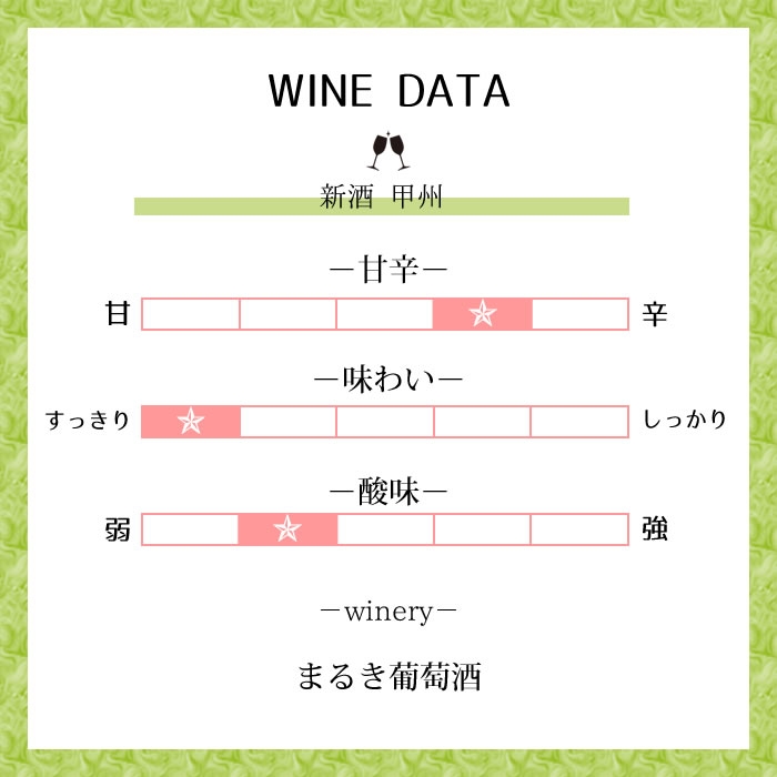 甲州種特有の僅かな甘みも感じられる総会かつフレッシュな口当たりです。